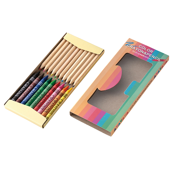 9色のクレヨンと10色の色鉛筆がセットになった、実用性の高いカラフルなアイテムです。