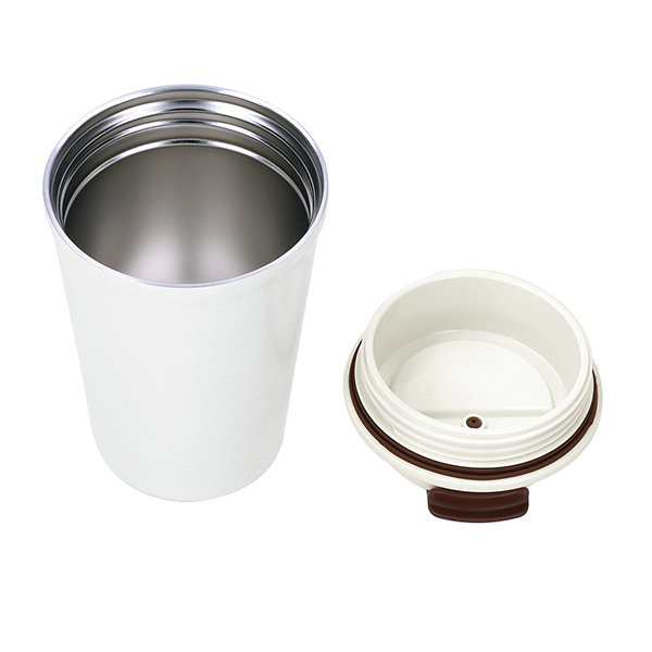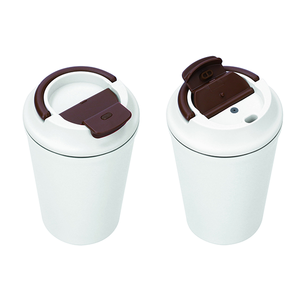持ち歩きしやすいふた付ステンレスタンブラーで飲み終わりまで温度を保ちます。 底面は滑り止め付き。