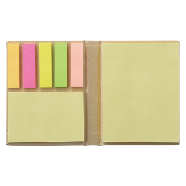 本のようなしっかりとした厚みのある表紙が特長の、再生クラフト紙を使用した付箋セットです。