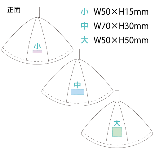 | 素押し・箔押し印刷範囲 | 刺繍/小:W50×H15mm、中:W70×H30mm、大:W50×H50mm |