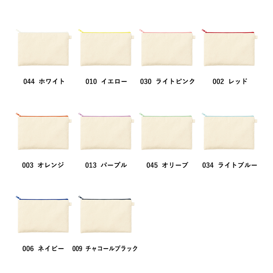 ファスナー部分はカラフルな10色展開ながら、ボディはシンプルなナチュラルカラーのためデザインを選ばずご使用いただけます。