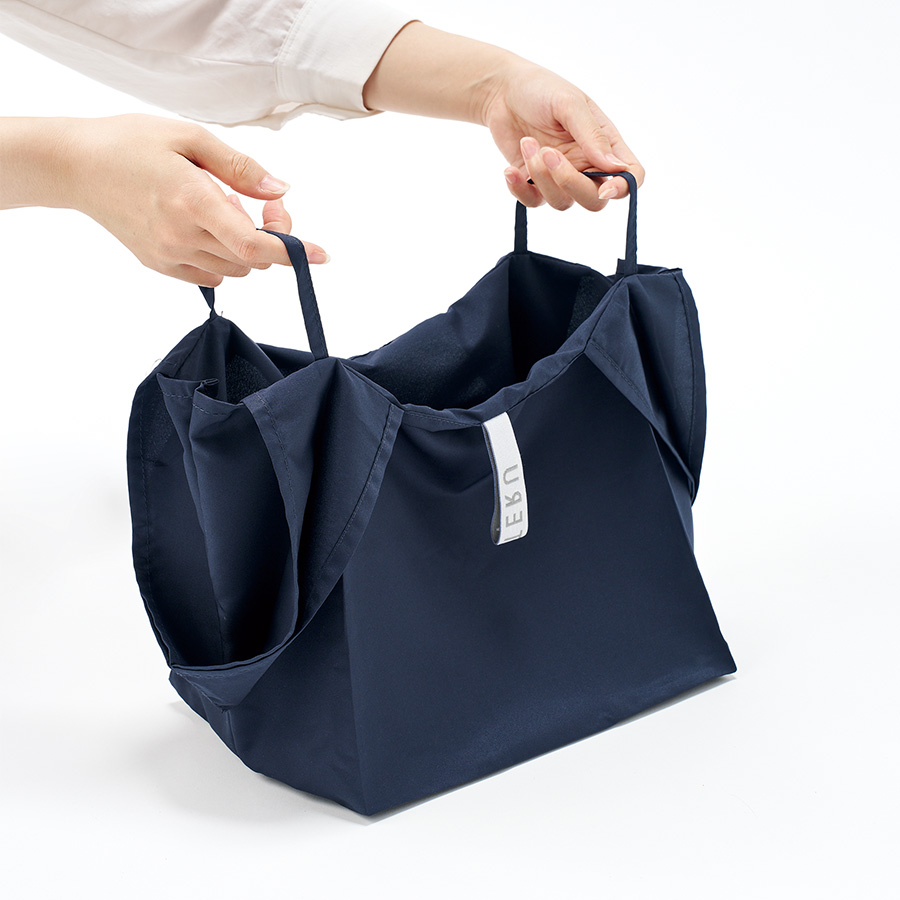 どなたでも使っていただきやすいネイビー、グレー、ミントブルーのカラー展開で食料品店向けのノベルティや記念品などに幅広くご提案していただけます。