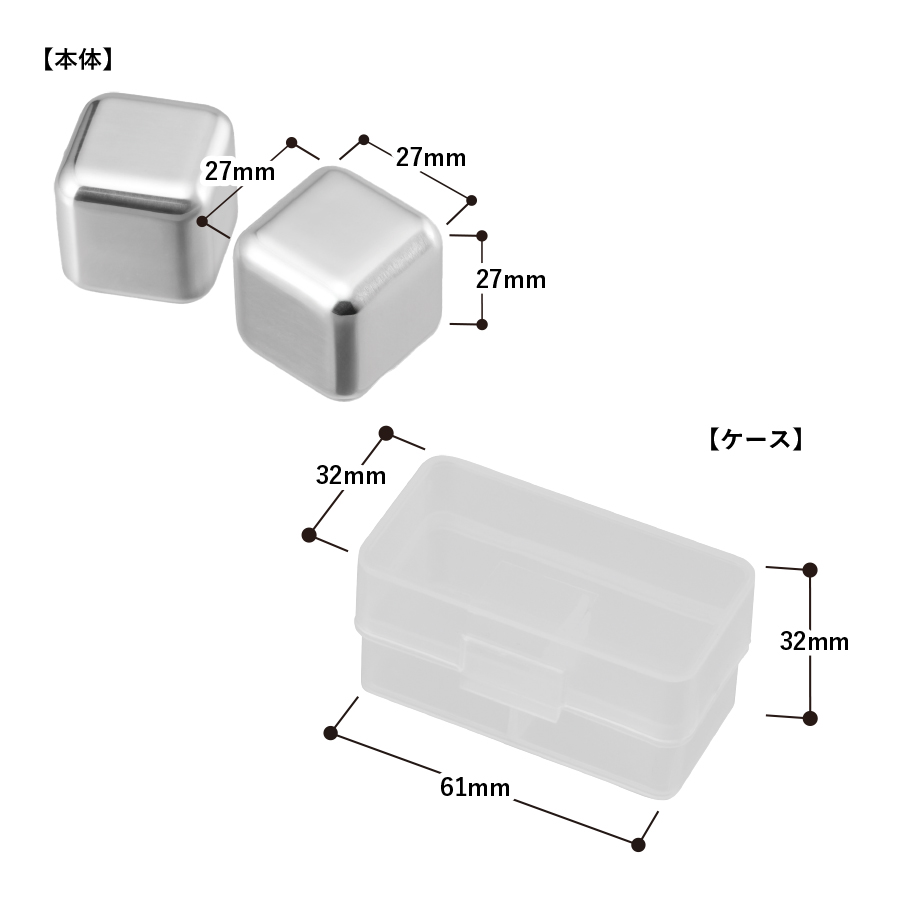 | 本体サイズ | アイスキューブ/W27×H27×D27mm ケース/W61×H32×D32mm |