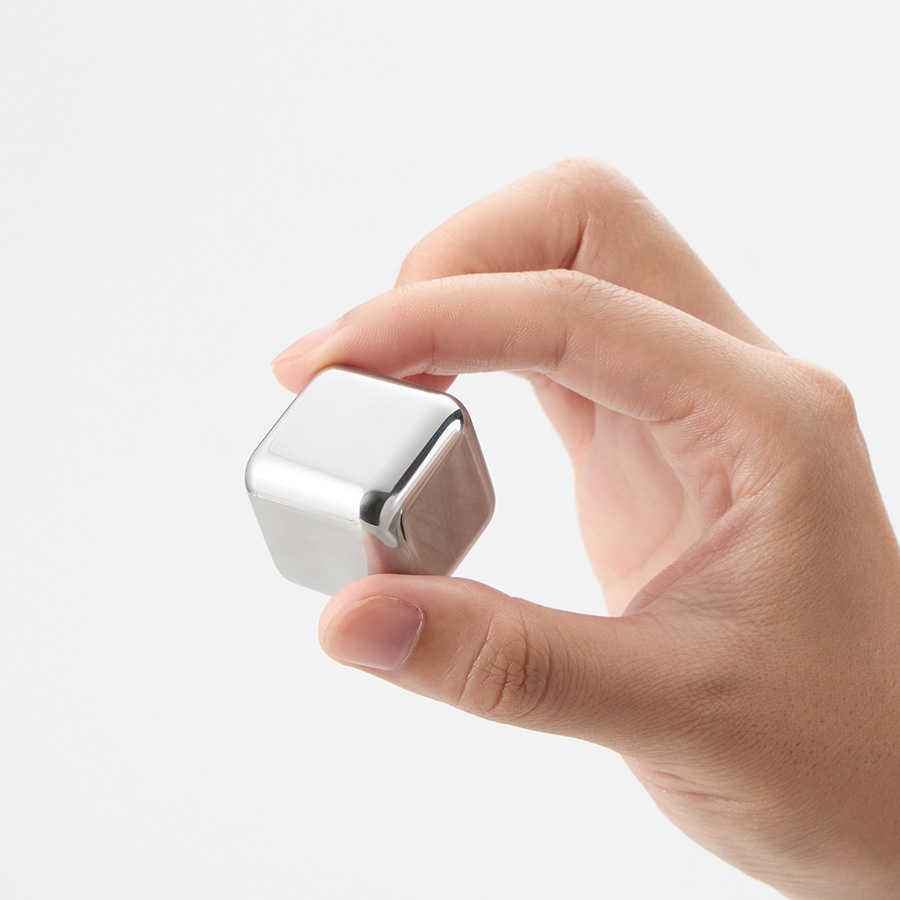 そのまま冷凍庫に入れて冷やすだけで氷の代わりに使用できる、ステンレス製のアイスキューブです。
