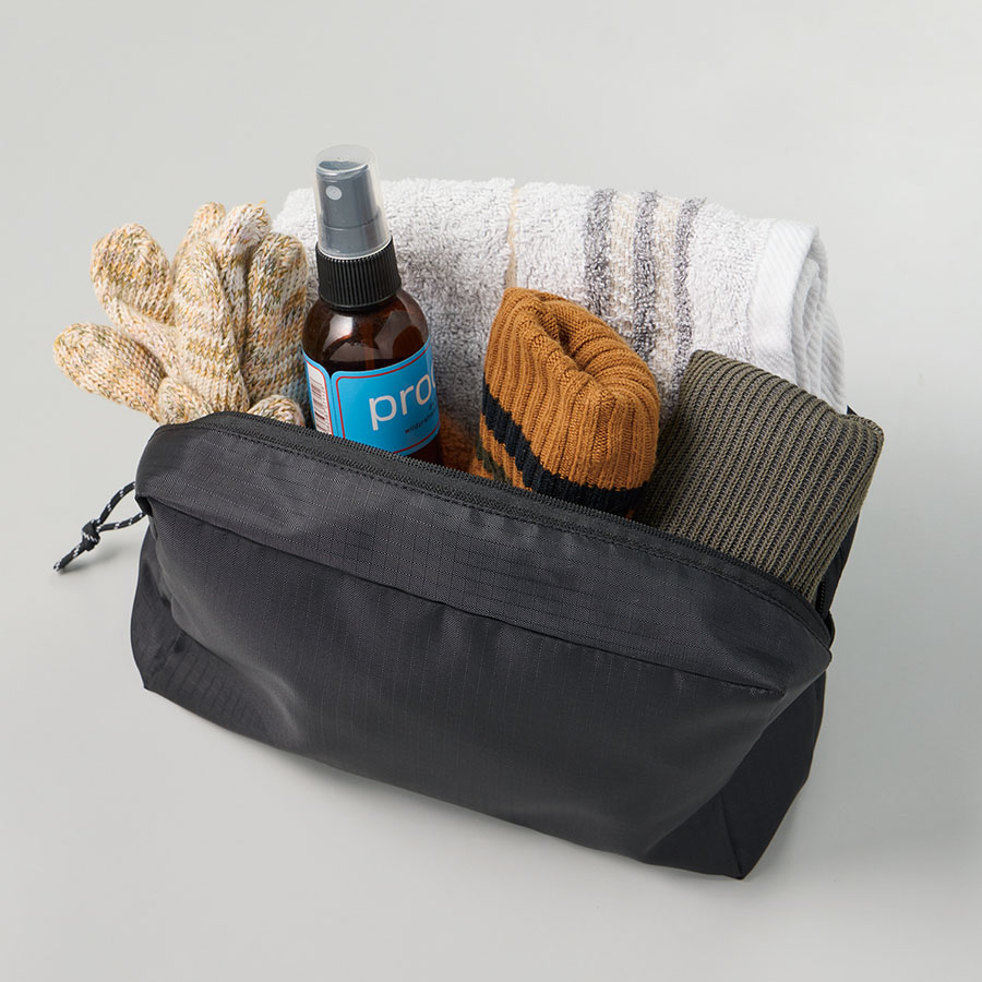 使いやすさとデザイン性を両立したマチ付きリップストップポーチです。