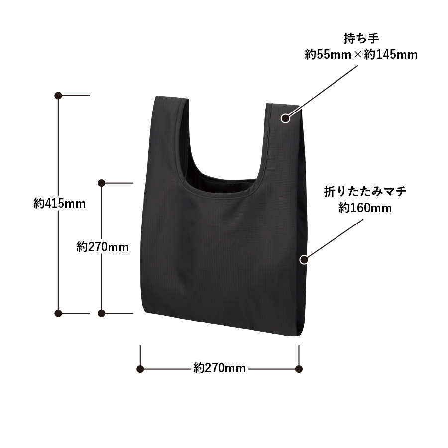| 本体サイズ | 本体/約W270×H270(持ち手含む415)mm 持ち手/約W55×H145mm 折りたたみマチ/約160mm |