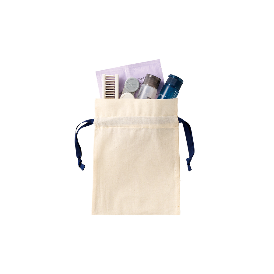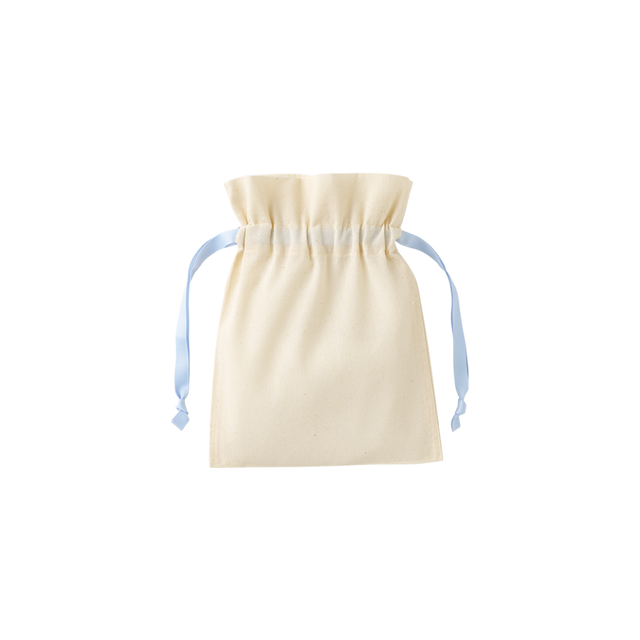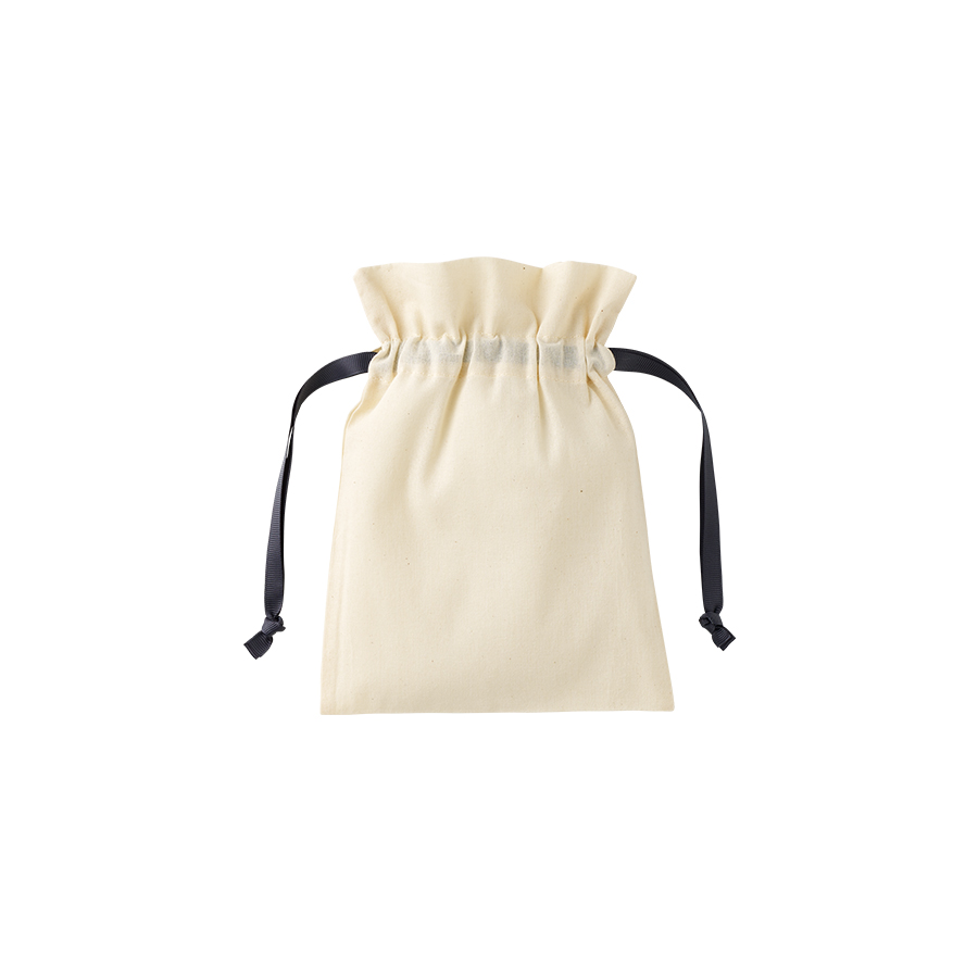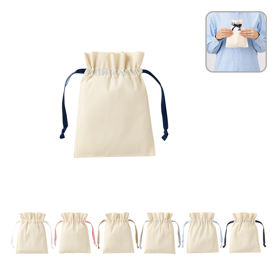7色展開のカラーリボンがポイントのコットン巾着です。