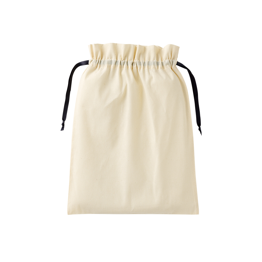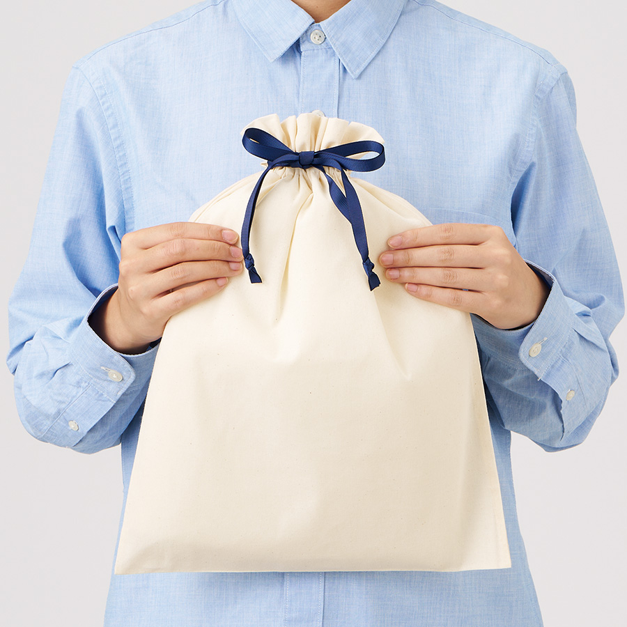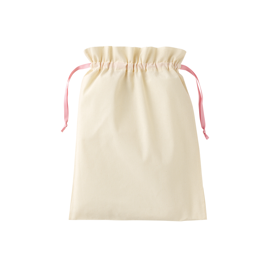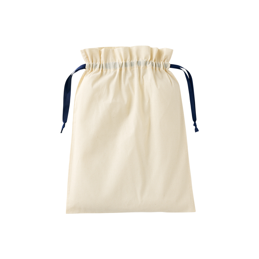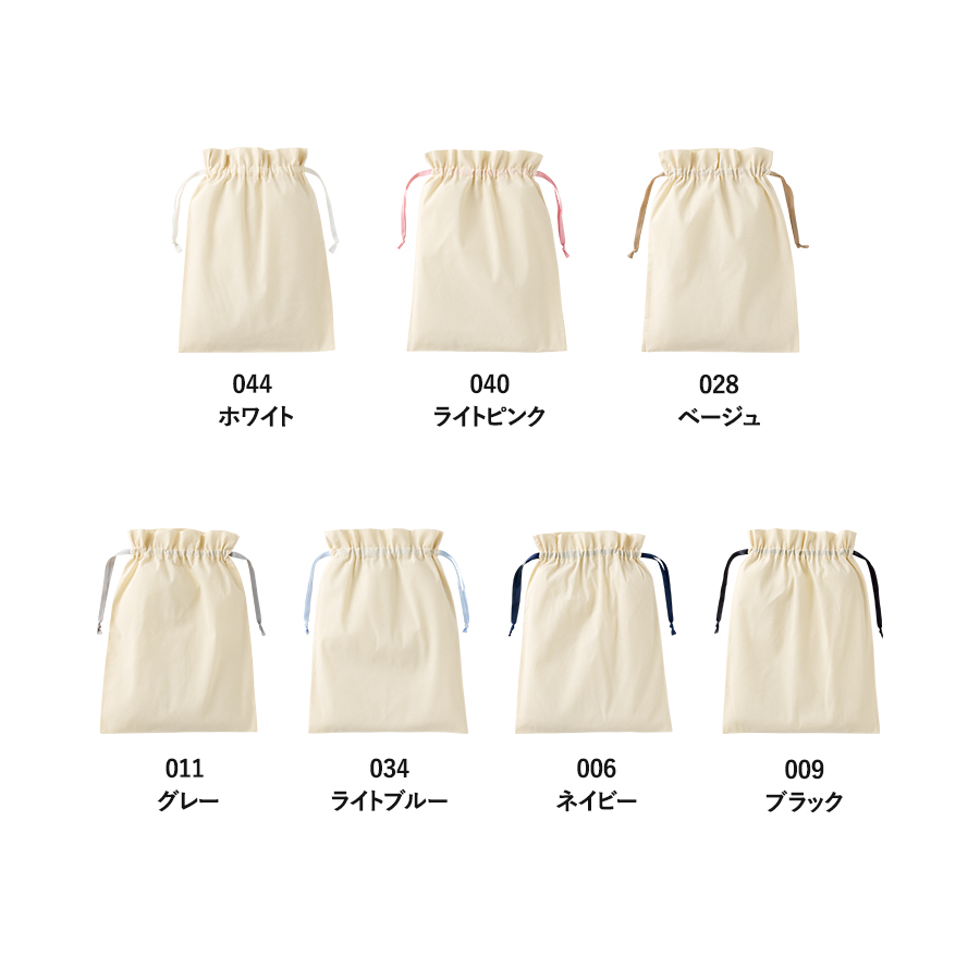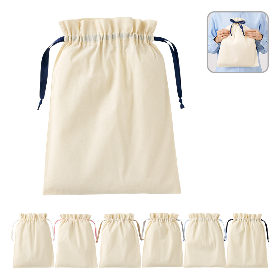 7色展開のカラーリボンがポイントのコットン巾着です。