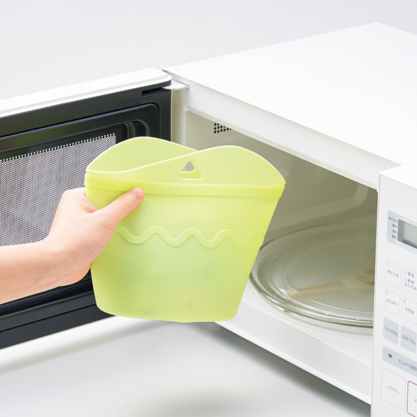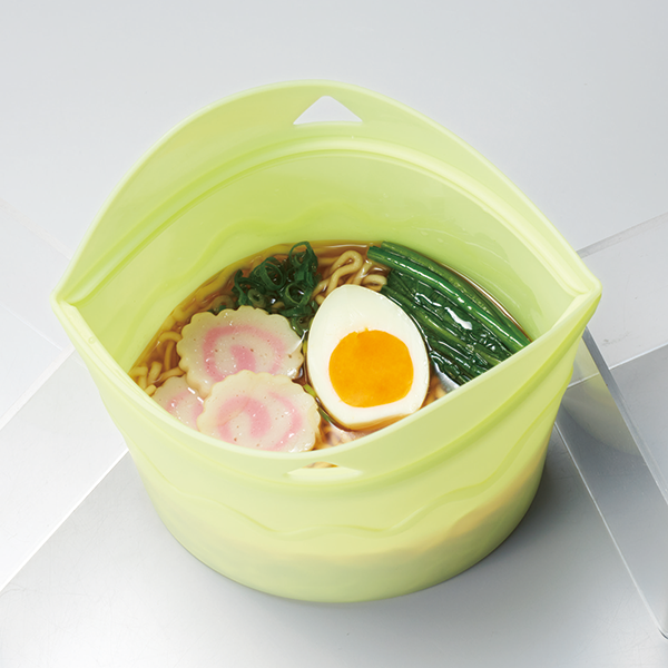 電子レンジで加熱調理や食材の冷凍保存にも、マルチに使えるシリコン製フードバッグです。 底面が広く、お好み具材で袋麺も簡単調理。