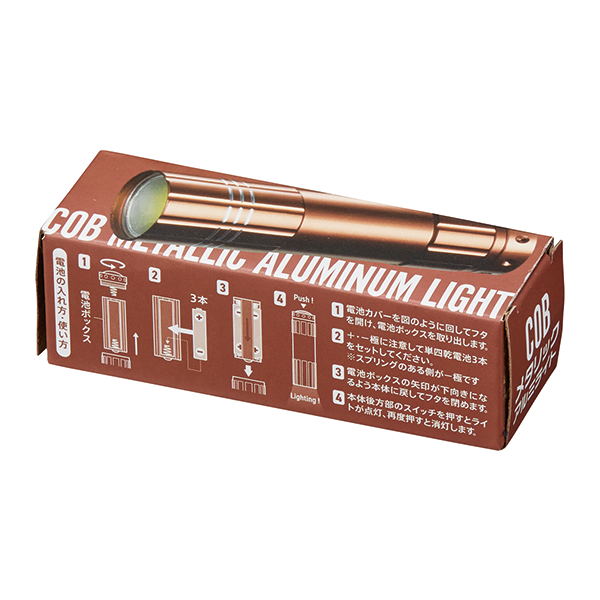 軽量アルミボディ採用の高輝度COBライト。 ストラップ付で持ち運びに便利、アウトドアカラーのお洒落で実用的なアイテム。