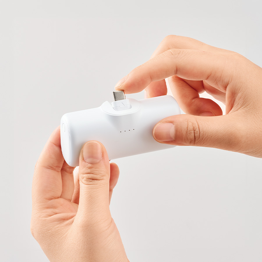 Type-C端子は折りたたんでしまうことができるため、持ち運びの際に邪魔にならずバッグの隙間にも入れておくことができるコンパクトな形状です。