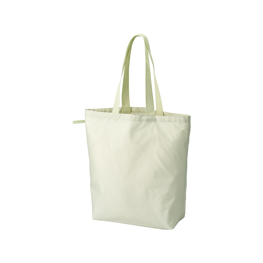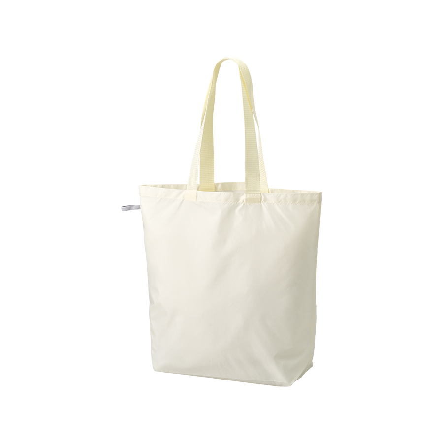 上質な光沢感としなやかでさらっとした手触りが特徴の、ファインライトポリエステルを使用したマチありタイプのエコバッグです。