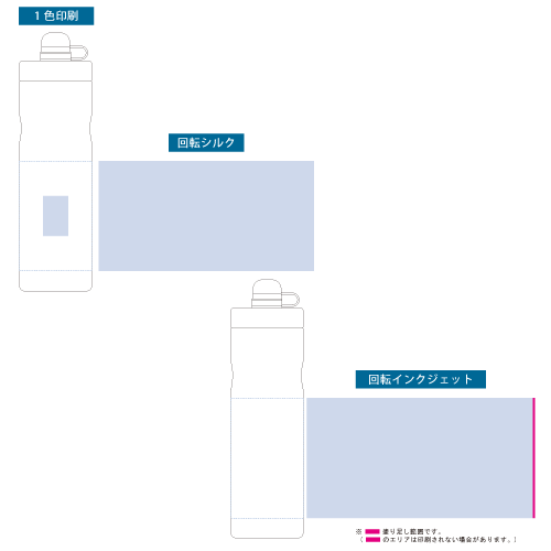 ボトル・タンブラー・マグカップの一色印刷は、「パッド印刷」「回転シルク印刷」の2種類があります。