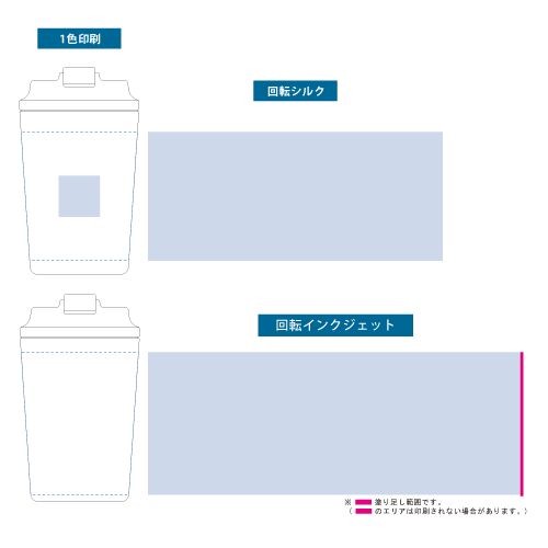 ボトル・タンブラー・マグカップの一色印刷は、「パッド印刷」「回転シルク印刷」の2種類があります。