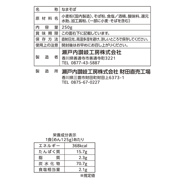 | 付属品 | <セット内容> 生そば250g×1 |