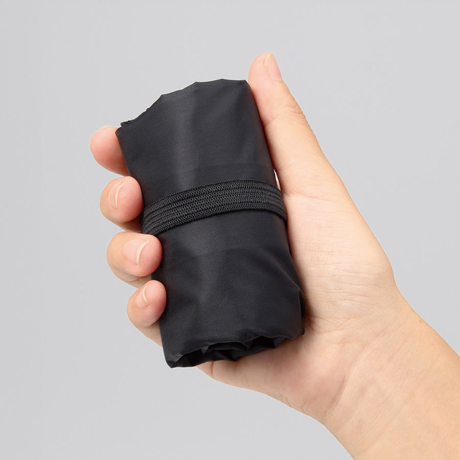 ハンドルが付いており持ち運びにも便利で、反対側にはゴムが付いており使用しない時にはコンパクトに畳んでしまうことができます。