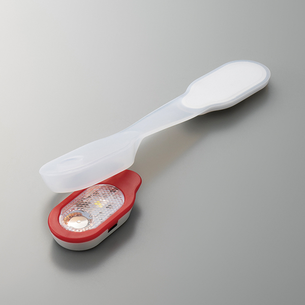 折り曲げることで簡単に服やバッグに取り付けられる小型のLEDライトです。