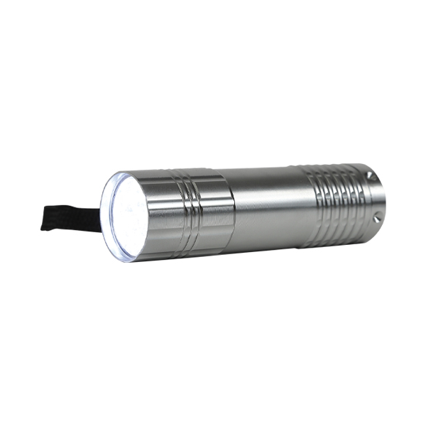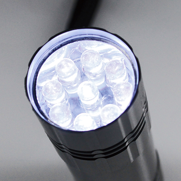 コンパクトながら強力照射!メタリックなアルミボディの9LEDライトです。