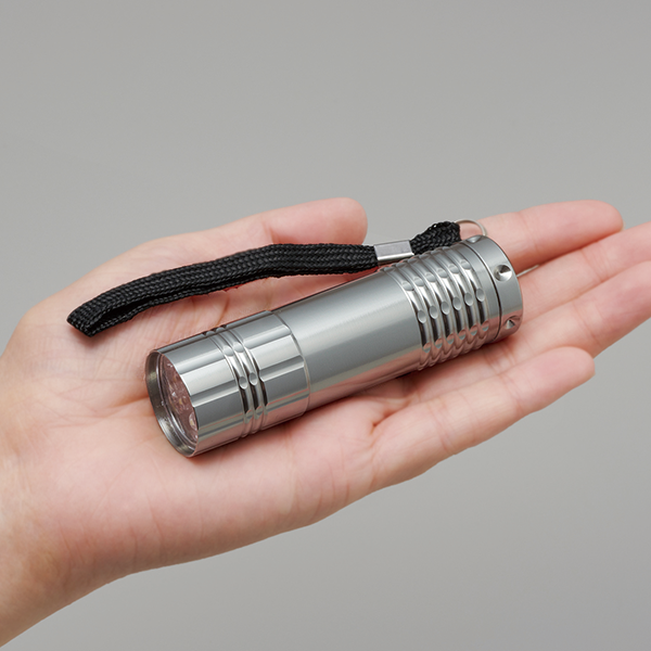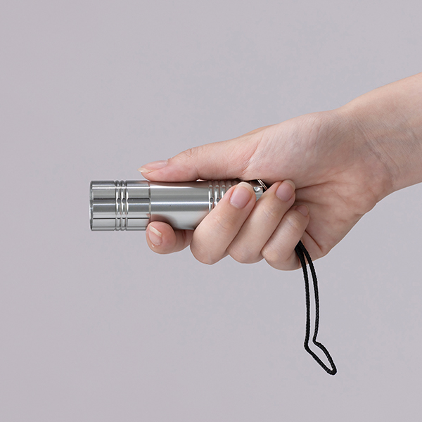 高輝度LEDライトを9つ搭載しており、高級感のあるメタリック調のアルミボディがしっかり手にフィットします。