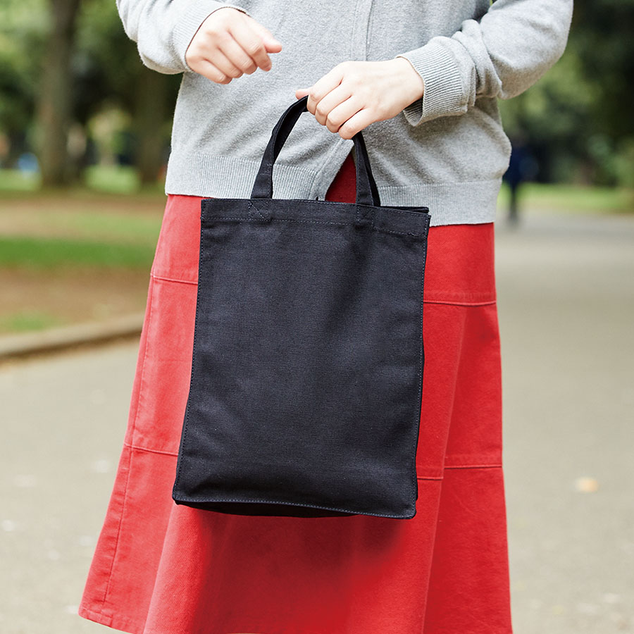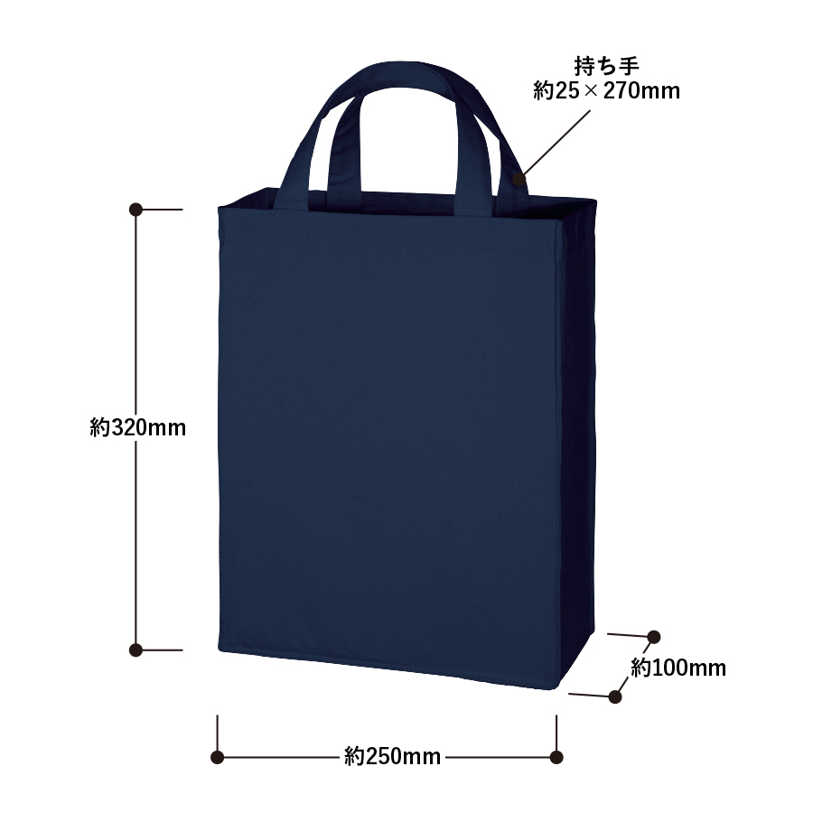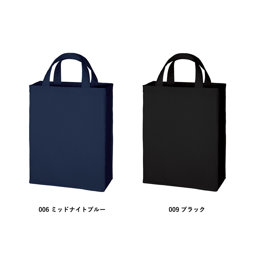 9色展開が魅力的な厚みのあるコットン生地のスクエアトートです。A4サイズが収容可能で企業用ノベルティや個人利用など幅広い用途にご利用いただけます。