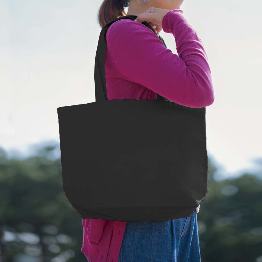 A4サイズが横に入るサイズ感の厚みあるコットン生地のバッグです。横型フォルムの丸みを帯びたデザインが人気を呼んでいます。本体色も9色展開と選ぶ楽しさもあります。