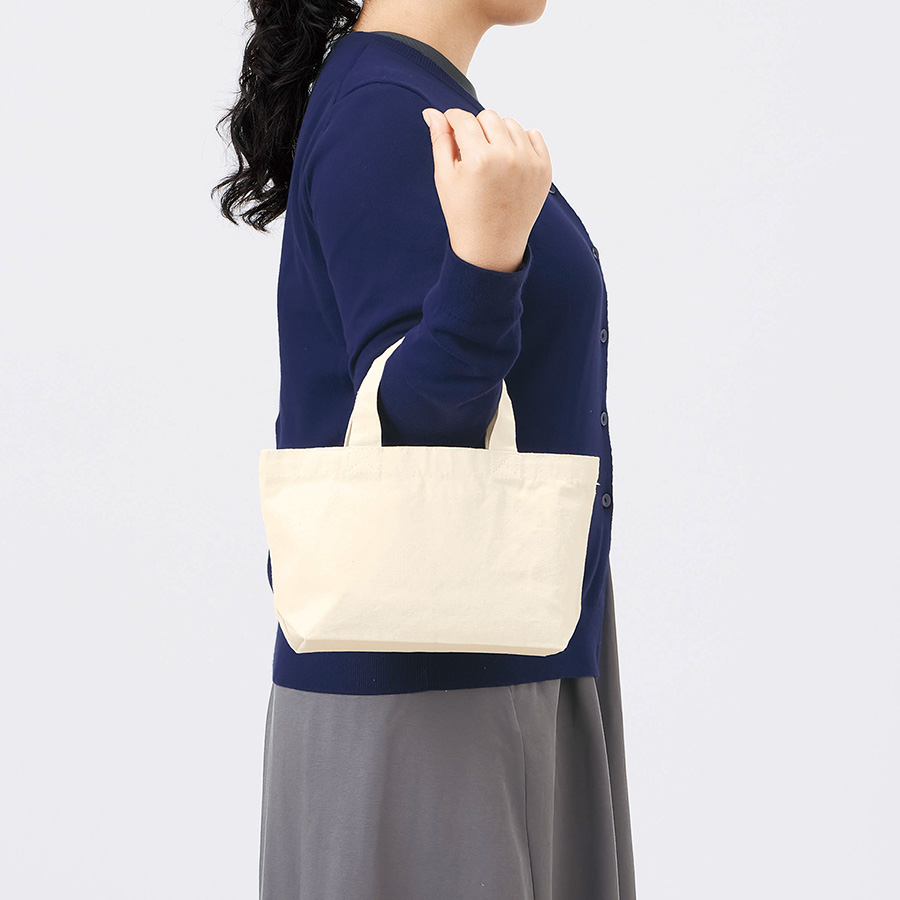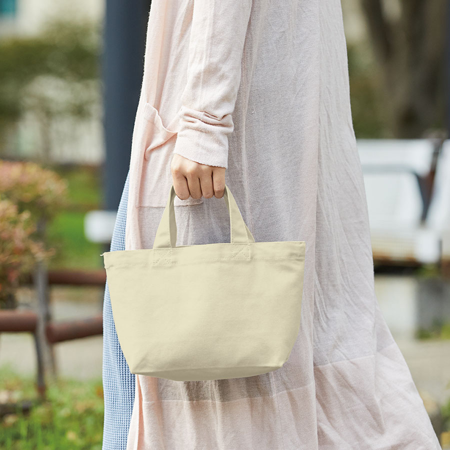 お財布などの小物を持ち運ぶ、ちょっとしたお出かけに使いやすい厚みのあるコンパクトなコットントートバッグです。いつもお使いのバッグに忍ばせて、コンビニ袋の代わりや、サブバッグとしてもお使いいただけます。名入れも可能な商品のため、オリジナル商品の作成、ノベルティとしての使用もおすすめです。※エコマーク付