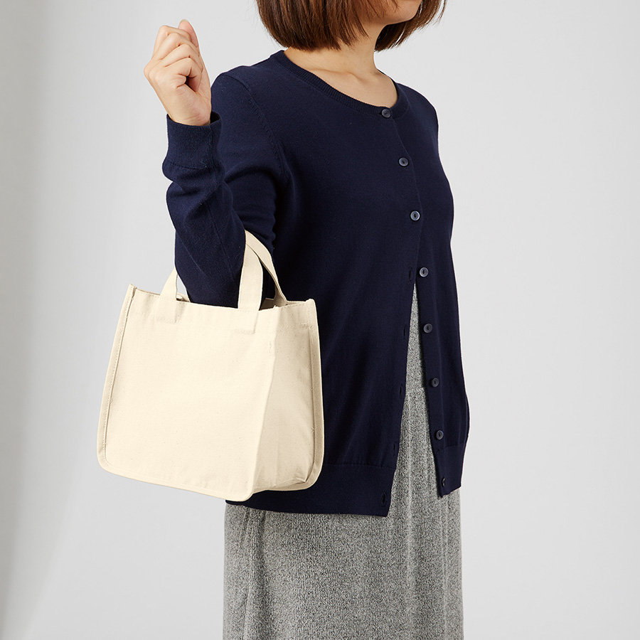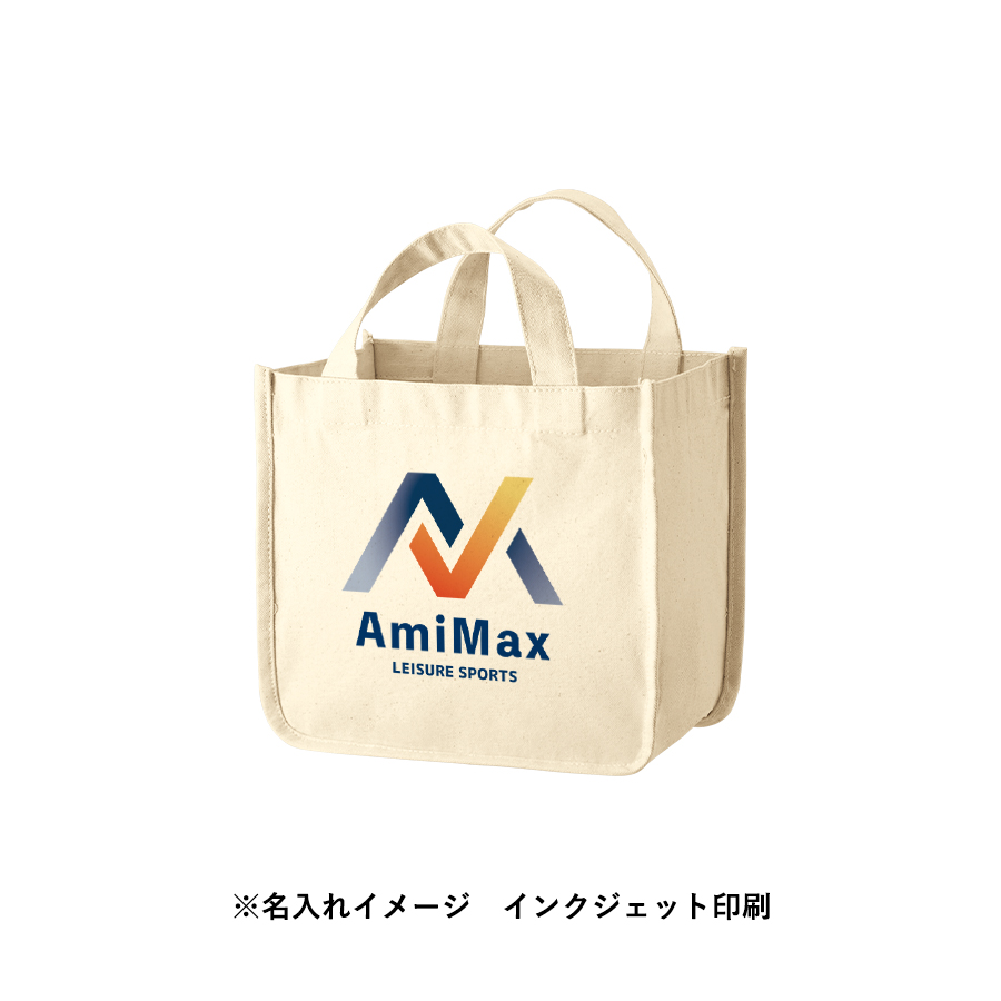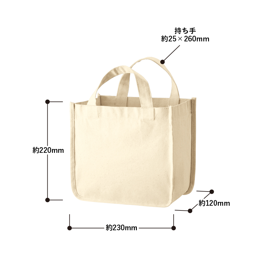 流行のスクエア型キャンバストートバッグです。中の荷物が崩れにくい仕立てになっているので、ちょっとしたお出かけからたくさん物をいれたい時など幅色いシーンでお使い頂けるバッグです。広い底マチがあり、お弁当の持ち運びや傾けたくないものの持ち運びにも最適です。バッグを置いた時に倒れないのは嬉しいですね。ナチュラルカラーのため、持ったときに主張しすぎずさりげなく使えます。印刷可能商品!一色印刷からフルカラー印刷まで幅広い印刷に対応しておりお好みのデザインでオリジナルトートバッグを作成出来ます。側面にデザインを名入れしてあなただけのバッグを作成してください。ノベルティはもちろん、販売品としてもおすすめの商品です。