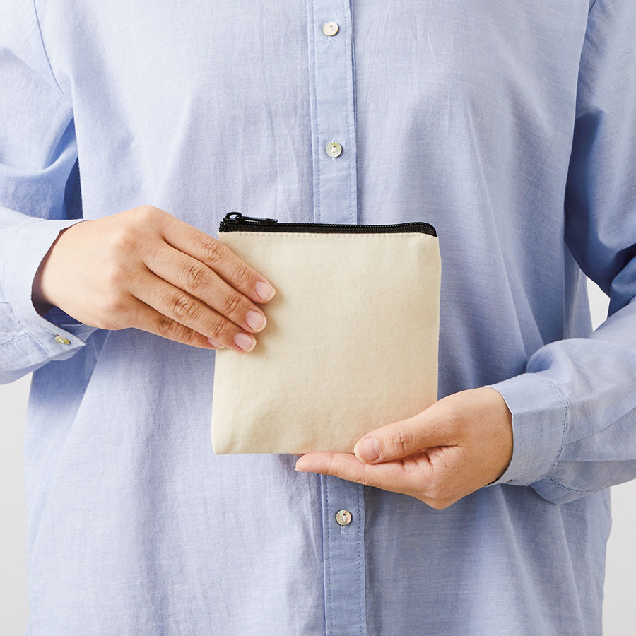 人気のフラットポーチにSSサイズが登場しました。真四角のフォルムをしたキャンバス生地のポーチです。コスメや鍵などの小物入れとして活躍するコンパクトサイズのポーチは、バッグやお菓子とのセット販売もおすすめです。コスメブランドなどの販促品としてはもちろん、キャラクターグッズやレジャー施設の物販品まで幅広くご提案頂けます。