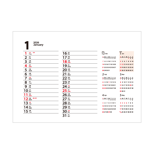 【最短7営業日出荷!】実用性を考えたシンプルで洗練されたデザインのカレンダー。