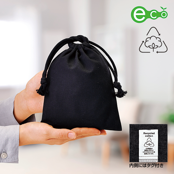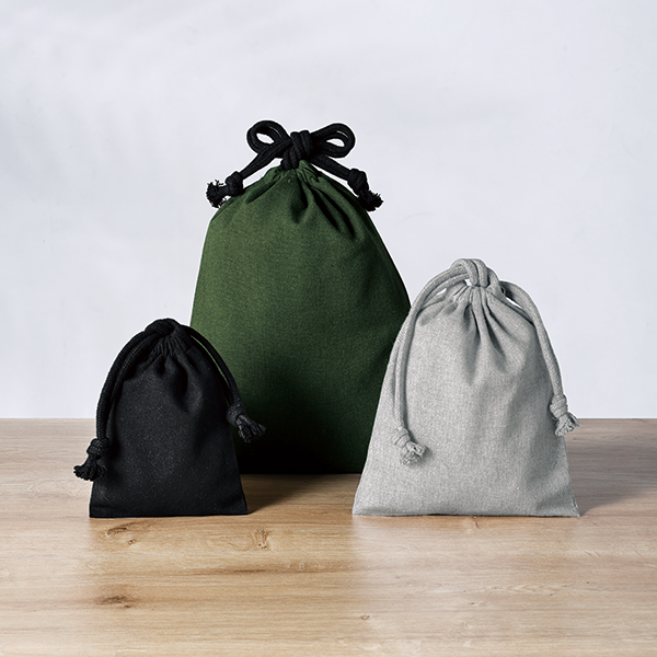 リサイクルコットン巾着にカラーバリエーションが登場!!天然素材ならではの親しみやすい質感が魅力。エコ&SDGsへの貢献とPRを同時に叶えながらも、巾着の利便性やかわいらしい見た目も販促品として大きな魅力。 商品を入れてお渡しした後も利用しやすいアイテムなので、名入れ効果も期待大です。