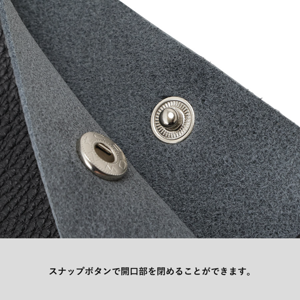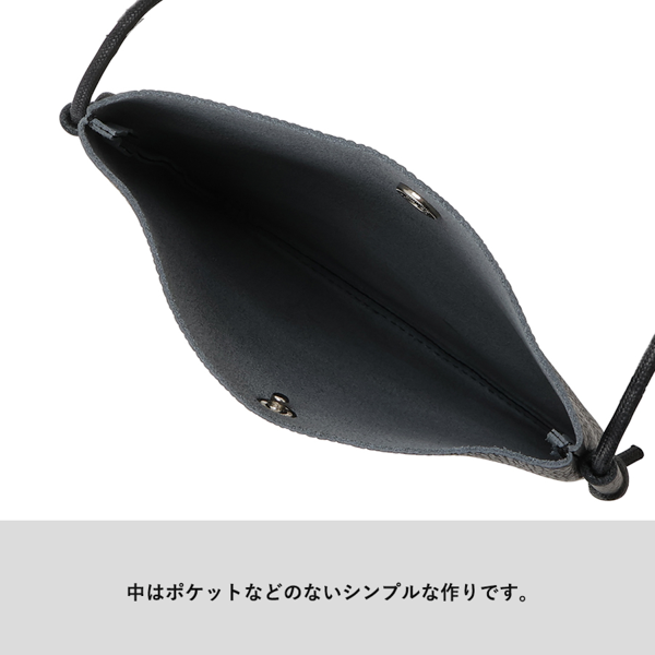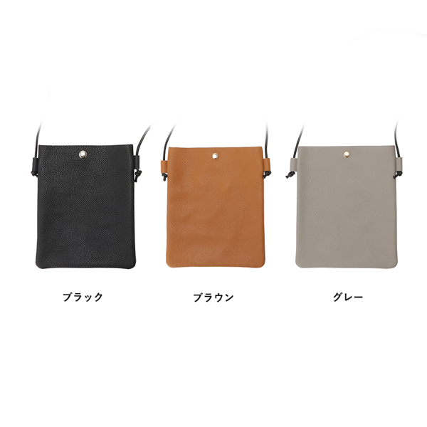 シュリンクレザーを使用しているため、ナチュラルなシボ目によって傷が目立だちにくく、上品かつ柔らかい雰囲気に仕上がります。スマートフォンより少し大きめのサイズ感で、ミニマルなデザインが魅力。ちょっとした外出時には手ぶら感覚で使え、スタイルのアクセントにもなるアイテムです。軽量ながらしっかりとした作りで、休日の外出から通勤時のサブバッグまで幅広く活躍します。アパレルブランドやセレクトショップの物販品としてはもちろん、キャンペーンやイベントのノベルティとしてもおすすめです。