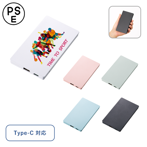 全面フルカラー印刷可能でデザイン映え間違いなし! 販促効果抜群なコンパクトモバイルチャージャーです。