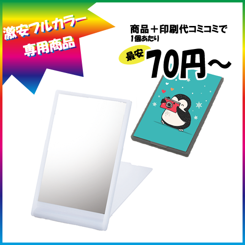 ポケットにも入るサイズのコンパクトミラー。外出先でもさっと手早く身だしなみを確認できます。1色印刷からフルカラー印刷まで対応しておりますのでお好みのデザインを印刷して販促活動にお役立てください。