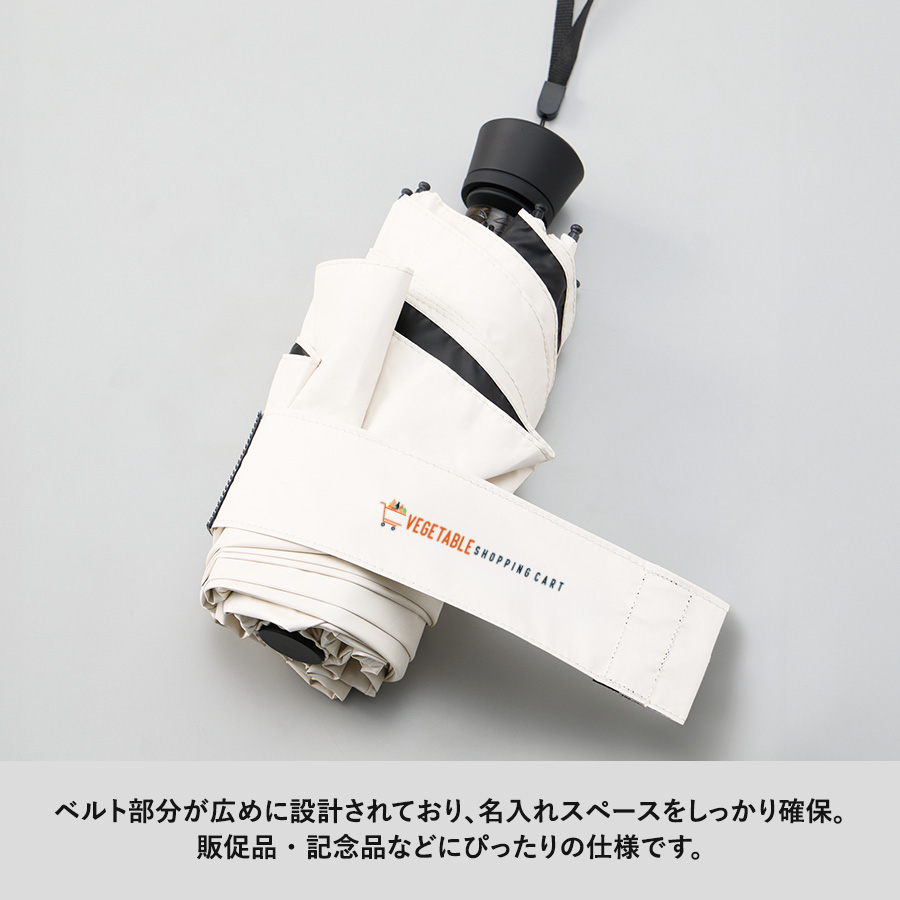 傘袋、ベルト、傘パネルに名入れが可能で、フルカラー印刷にも対応しています。