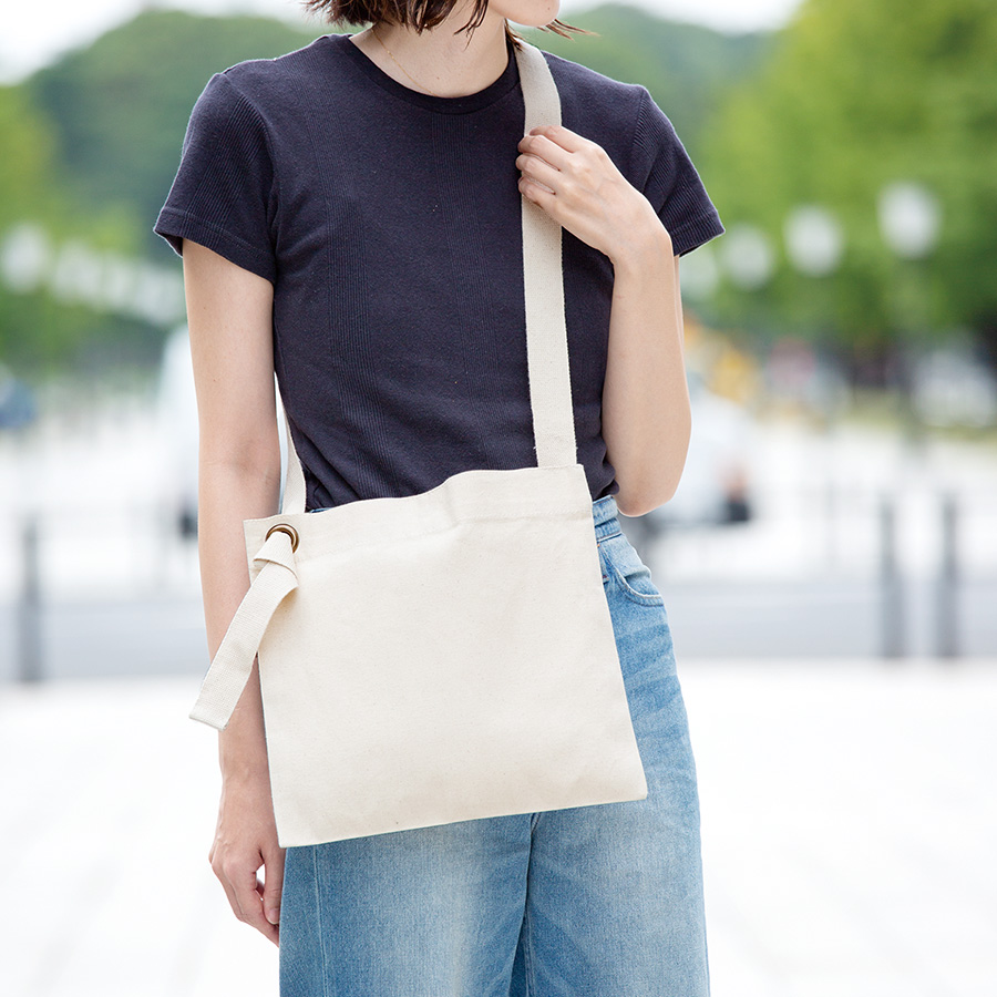 キャンバスアスクエアサコッシュナチュラルは、長さ調節が可能なハトメ付きのサコッシュです。ショルダー部分にコットンテープを使用することで、デザイン性にもこだわりました。生地は10オンスを採用。スクエア形状がスタイリッシュなおしゃれ感を演出します。口元にはホックがついているので走ったり自転車に乗っても中身が飛び出ず安心です。本体色はシックで飽きの来ないカラーを採用。両面にも印刷が可能で熱転写やインクジェット印刷などフルカラー印刷が映えます。展示会やオープンキャンパス、アパレルブランドの購入特典などノベルティとしてはもちろん、物販商品としてもご利用頂けるマルチな商品です。A5サイズの収納が可能でお子様でも使用出来るのでレッスンなどの習い事にも活用出来ます。リーズナブルな価格も嬉しいポイントですね。※ご納品時、紐はハトメを通しておりませんのでご注意ください。