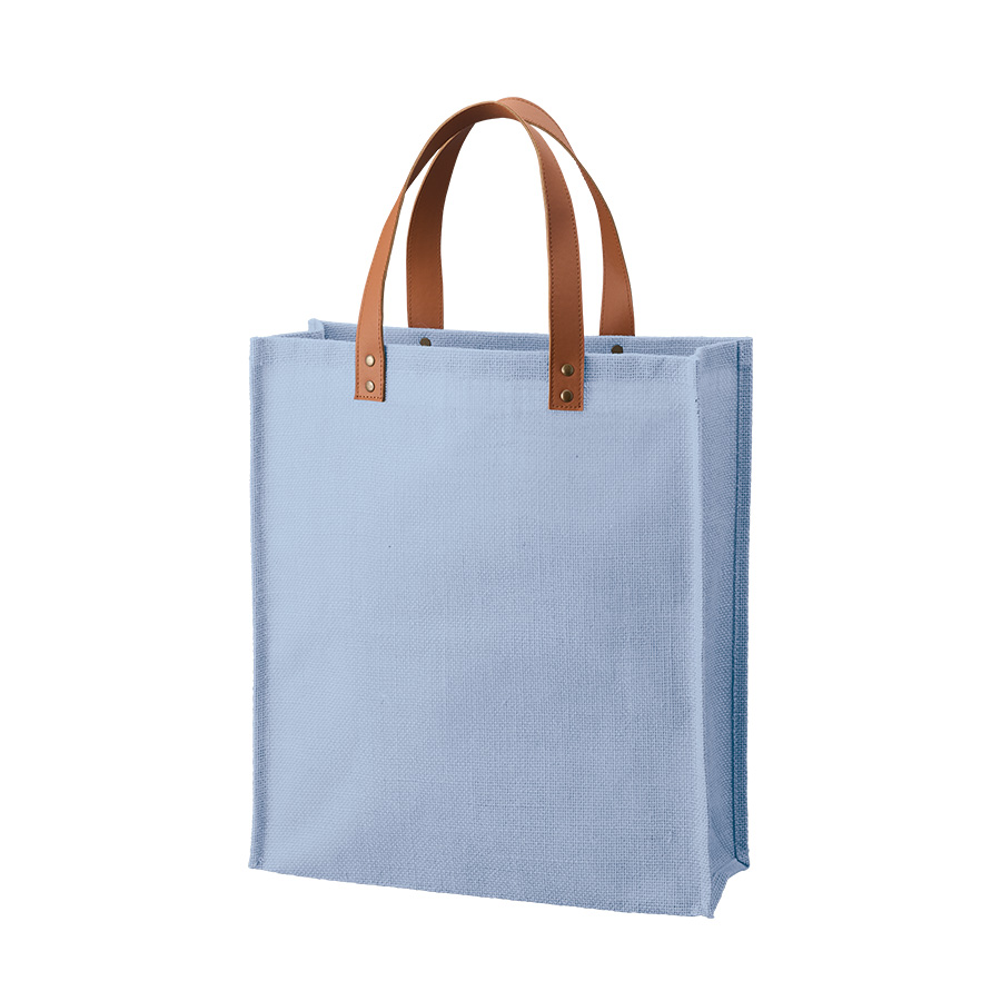 ジュートでは珍しい縦長バッグに合皮ハンドルを使用、外ハンドルの持ち手にはスタッズもついておりファッション性をだしております。大きいスケッチブックがしっかり入るサイズ感で、マチもあるので収納力も抜群です。