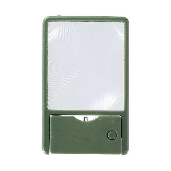 拡大率3倍の持ち運びに便利な薄型ルーペ。ライト付きなので暗いところでも大活躍! ライト部分を回転させるとハンディライトにもなります。