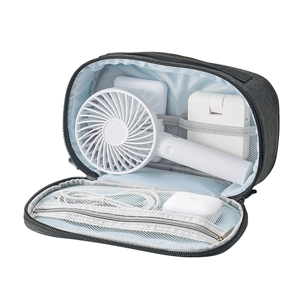 ビジネスやトラベル時に便利な大容量のクッションポーチです。 ビデオカメラやハンディファンも収納可能なサイズで、厚手のクッションが中身をしっかり保護。内側には仕分けに便利な2つのメッシュポケットとファスナー付きメッシュポケットを備え、持ち運びに便利な持ち手も付いています。
