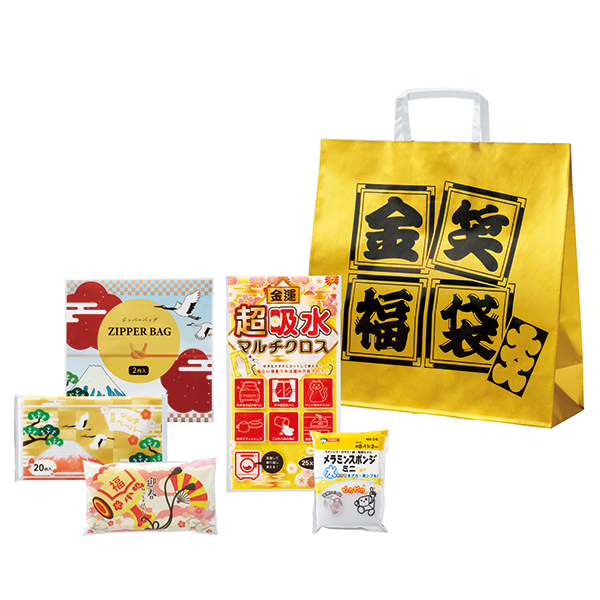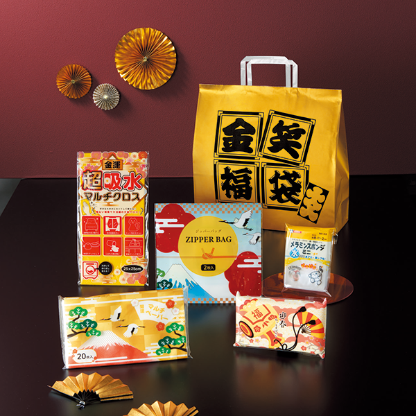 【11/4以降出荷開始】見るからにおめでたい金の福袋に、お役立ち生活雑貨を詰め込みました。ディスプレイも映えるお得な福袋です。