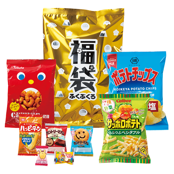 【11/4以降出荷開始】金ぴかお菓子福袋が仲間入り!キラキラ袋で売り場やブースを華やかに彩ります。大人ももらって嬉しいお菓子のセットです。