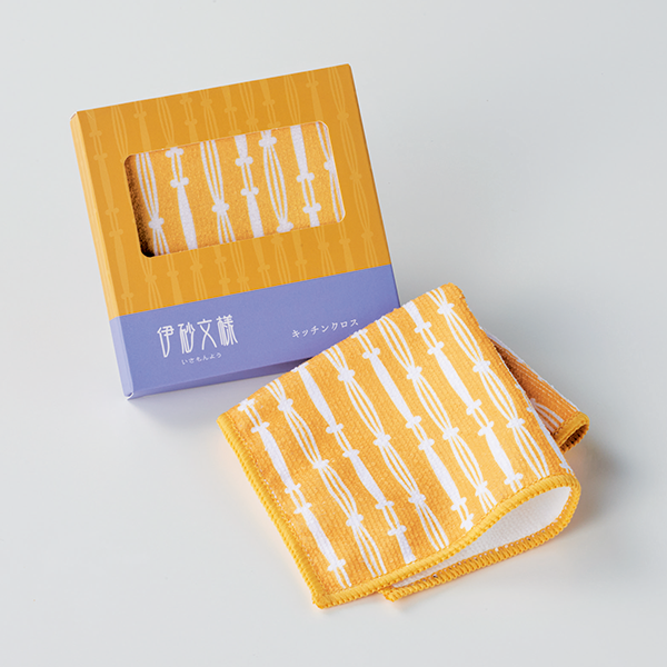 窓からのぞく和モダンデザイン柄がおしゃれ。使い分けもしやすい3枚組のキッチンクロスです。 京都で生まれた伝統柄「伊砂文様」の版権商品。