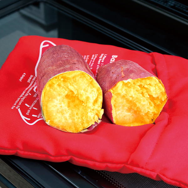 電子レンジで約5分(500W)で簡単美味しく焼いもが出来上がります。