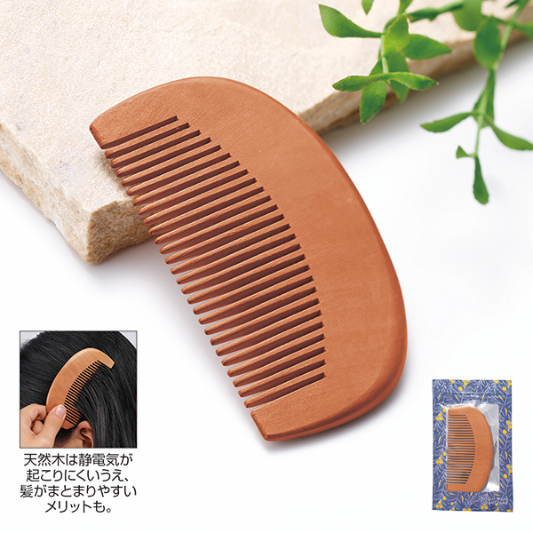 プラスチック製に比べてエコ度が高い天然木製コームです。軽量でかさばらないので携帯にも便利です。 ビジネス、プライベート問わず、常に身だしなみには気を配りたいもの。レトロなフォルムも