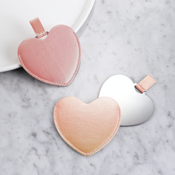 ひと目で心奪われるハート型のコンパクトミラー。オーロラに輝くカバーが、さらにギフト感を演出します。 ミラーは割れにくいステンレス製なので携帯にぴったり。美容業界はもちろん、健康食品やインテリア等、主婦や学生など特に女性をターゲットにしたイベントのノベルティにもおすすめです。