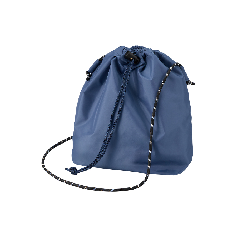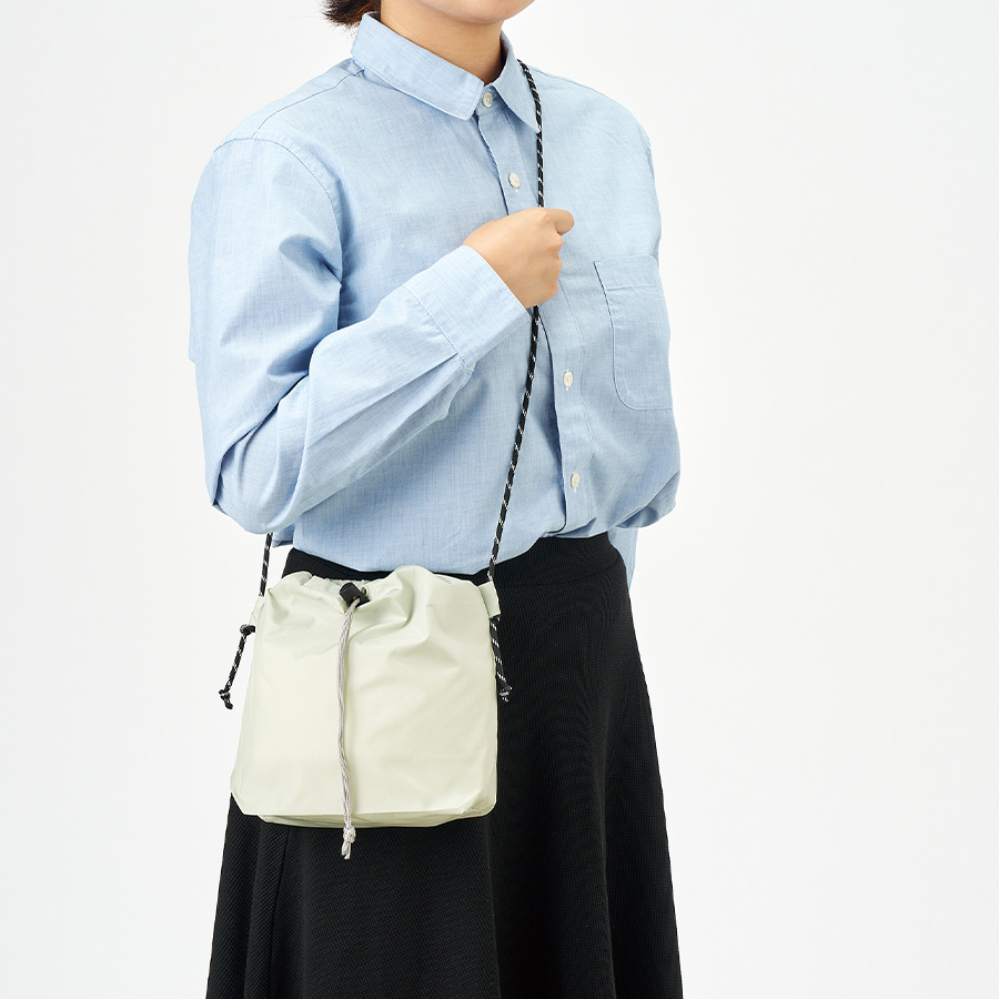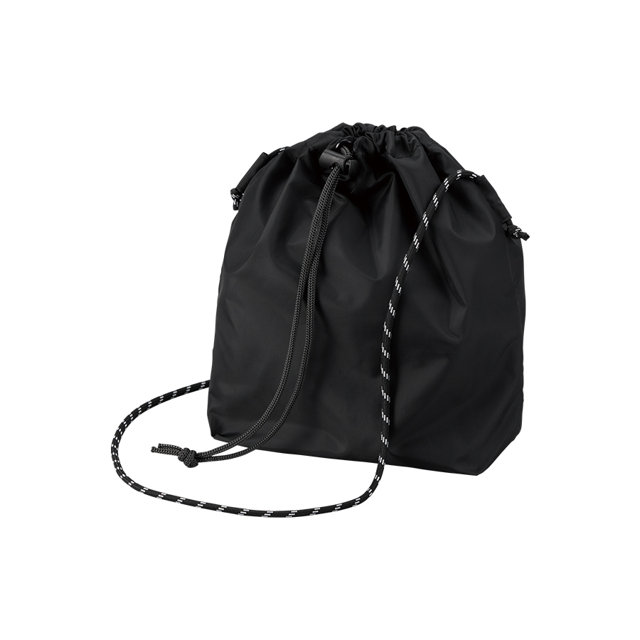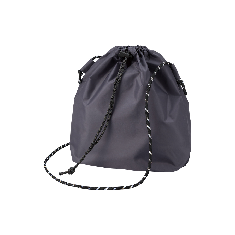 上質な光沢感としなやかでさらっとした手触りが特徴の、ファインライトポリエステルを使用した巾着ショルダーバッグです。
