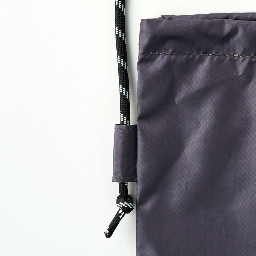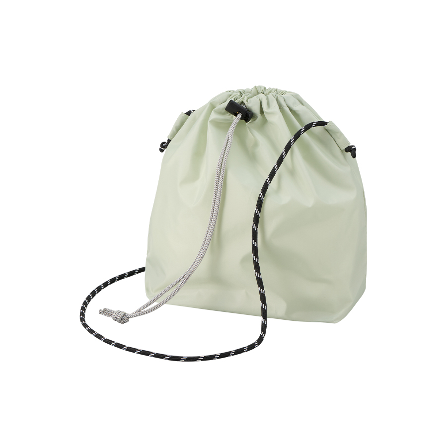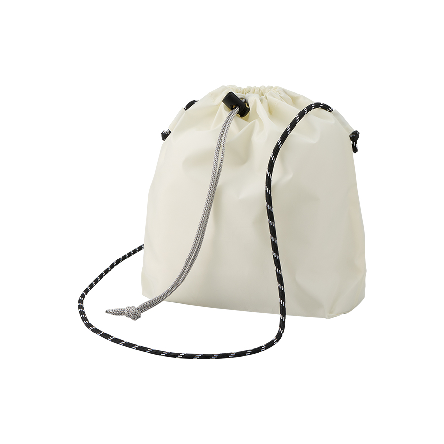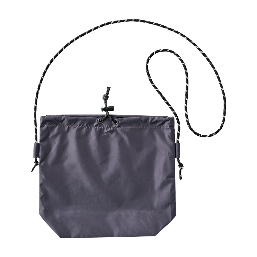 上質な光沢感としなやかでさらっとした手触りが特徴の、ファインライトポリエステルを使用した巾着ショルダーバッグです。