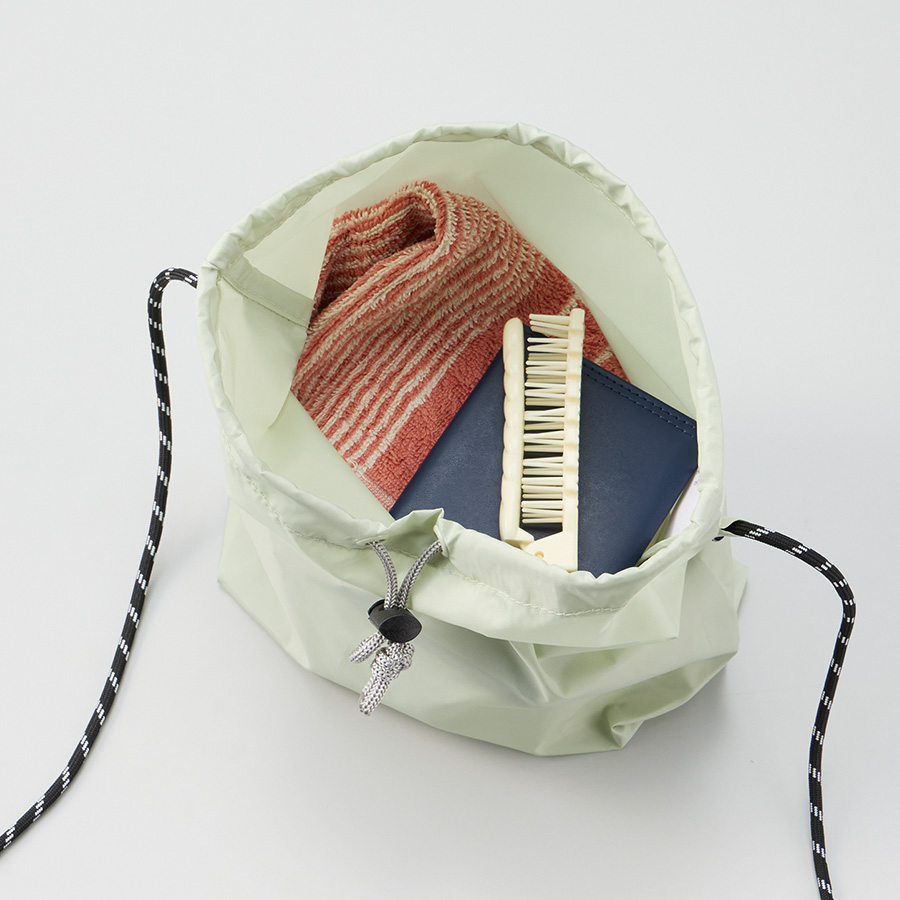 口元はストッパー付きになっており、中身を入れてキュっと絞れば