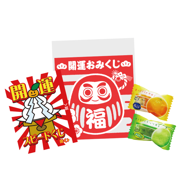 お正月イベントの集客にオススメ!店頭やカウンターなど省スペースで実施できます。 おみくじ付きお菓子がもらえます。