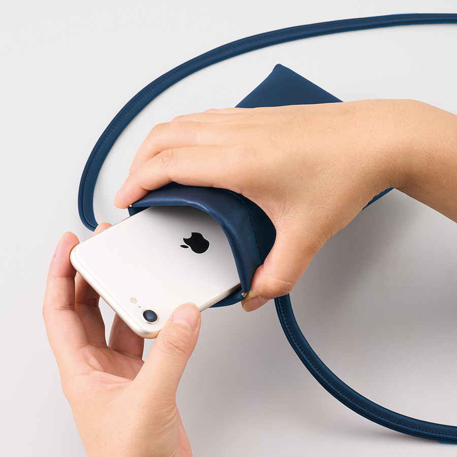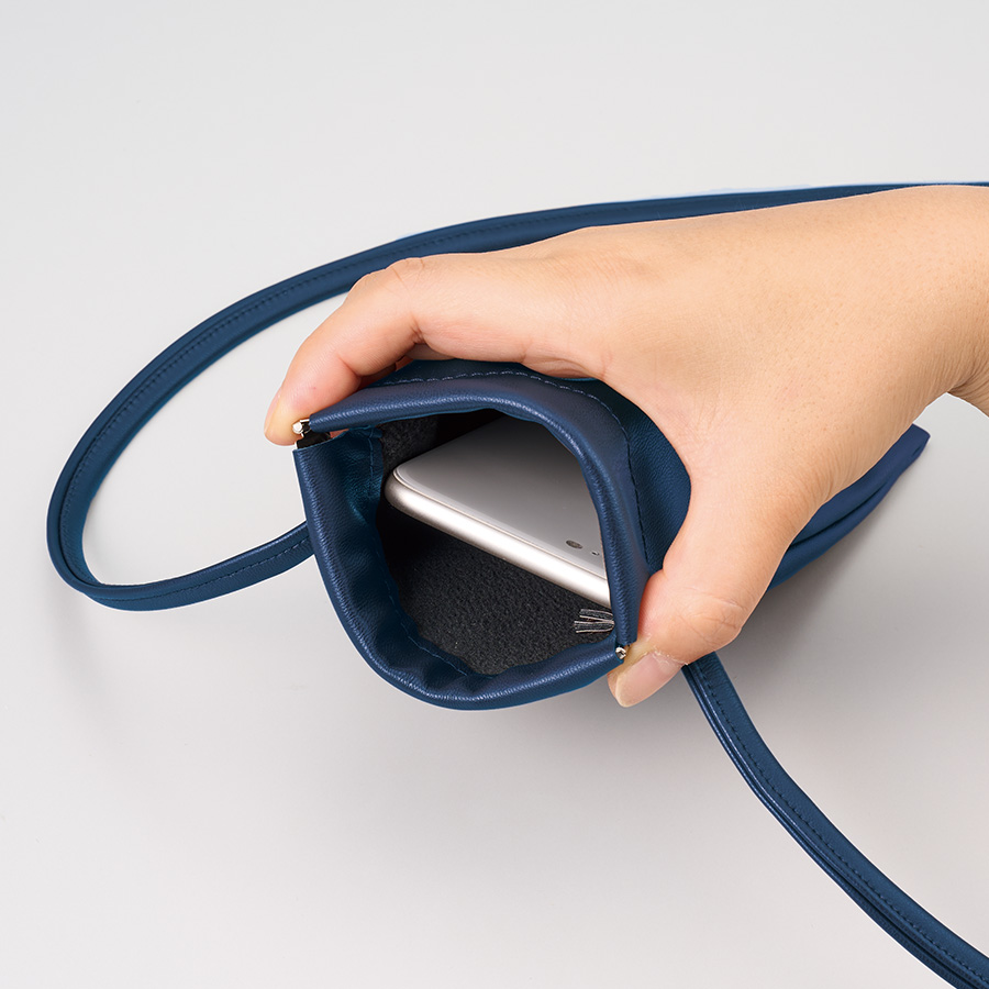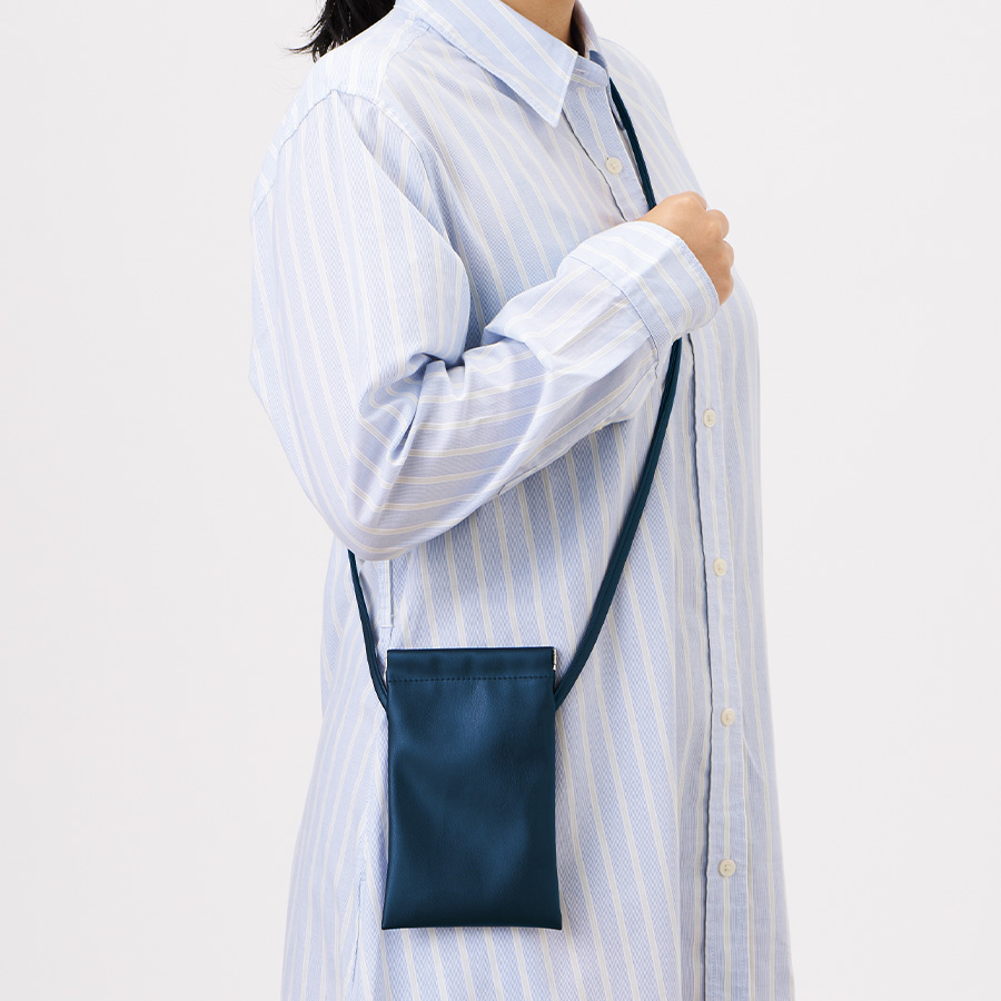 ショルダー紐は肩から掛けて使いやすい長さで、スマホがぴったりと収まる使い勝手の良いサイズ感なのでスマホケースや貴重品を入れて持ち歩くのに便利です。