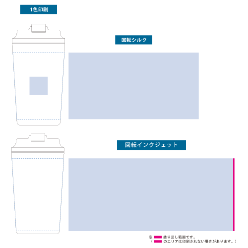 ボトル・タンブラー・マグカップの一色印刷は、「パッド印刷」「回転シルク印刷」の2種類があります。